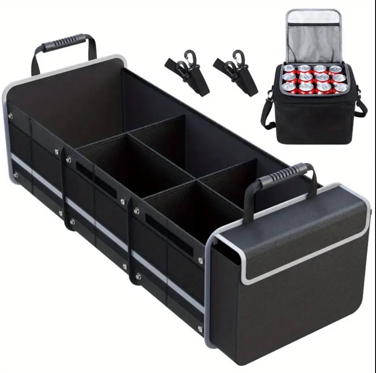 Organize smarter with our 2-in-1 Collapsible Car Boot Organizer (90cm) with Insulated Cooler Bag! Sturdy, heavy-duty, and leak-proof—perfect for groceries, road trips, or daily cargo. Folds flat for easy storage, durable, and built for convenience.