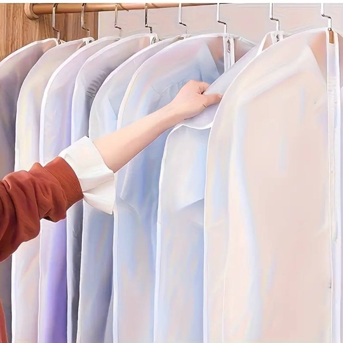 Keep clothes fresh and protected with this 5-piece Garment Waterproof Dustproof Protector Set. Made for hanging storage, each breathable, reusable cover is 60×140cm with a transparent design for easy viewing. Perfect for wardrobe organization at home or while traveling.