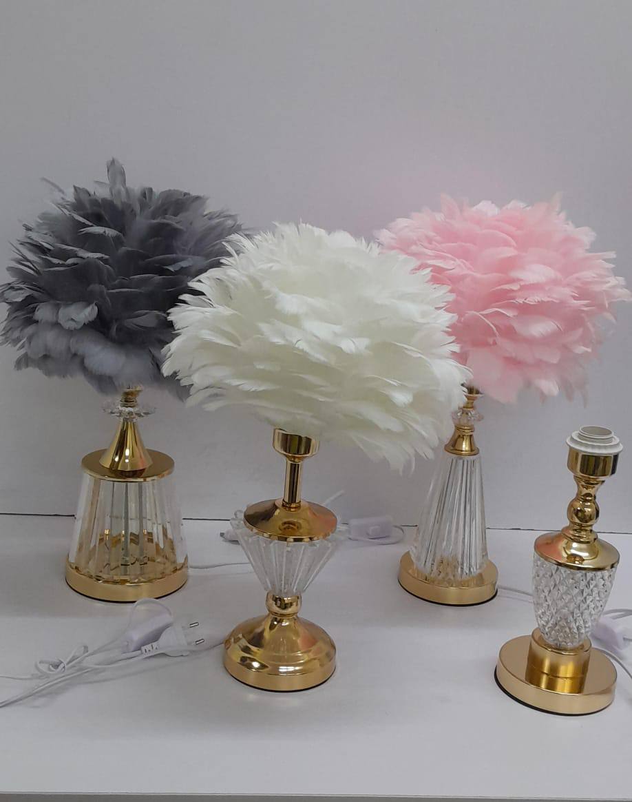 Elevate your space with this versatile base lamp—classic design with interchangeable tops. Choose between a sleek white shade or a soft feathered finish to match your mood or decor. Stylish, functional, and unique.