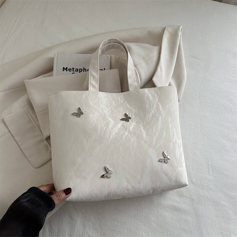 Elegant Butterfly large-capacity tote bag with button closure—perfect for office, college, errands, or parties. Spacious 34×24×10 cm size. All-season style, available in four stunning colours. Carry everything with charm and ease!