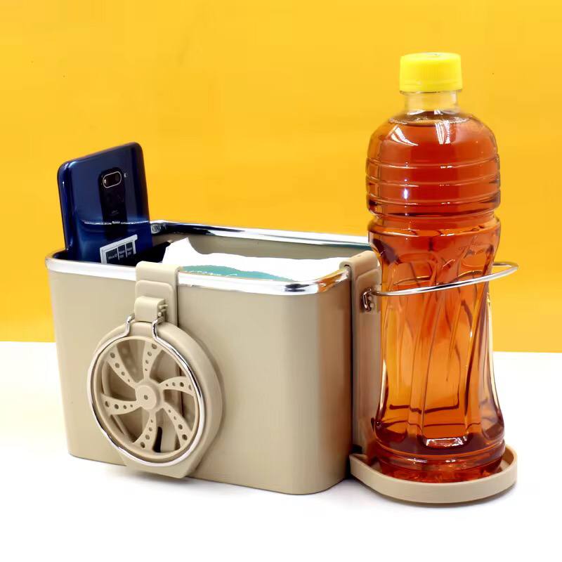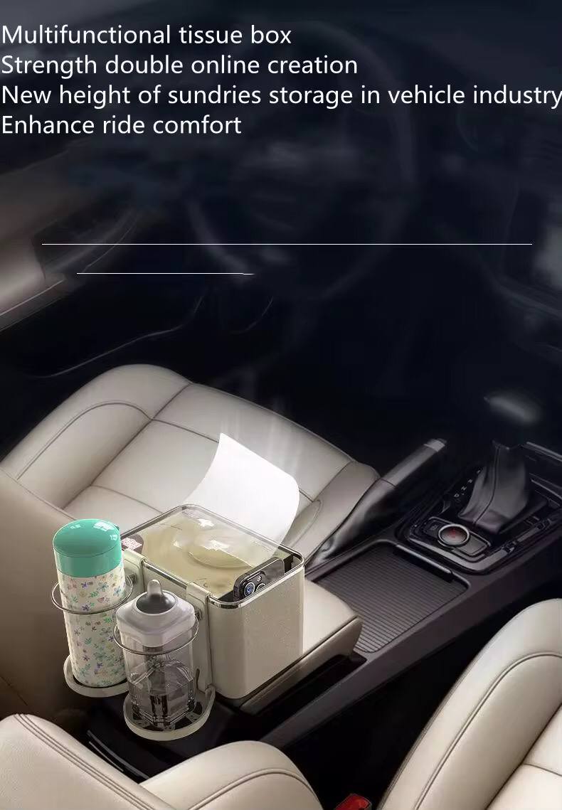 Maximize your car's storage with our Car Armrest Organizer! Featuring a box for essentials, a phone slot, and two bottle holders, it keeps everything in place while driving. Available in a sleek beige color for a stylish, functional addition to your car.
