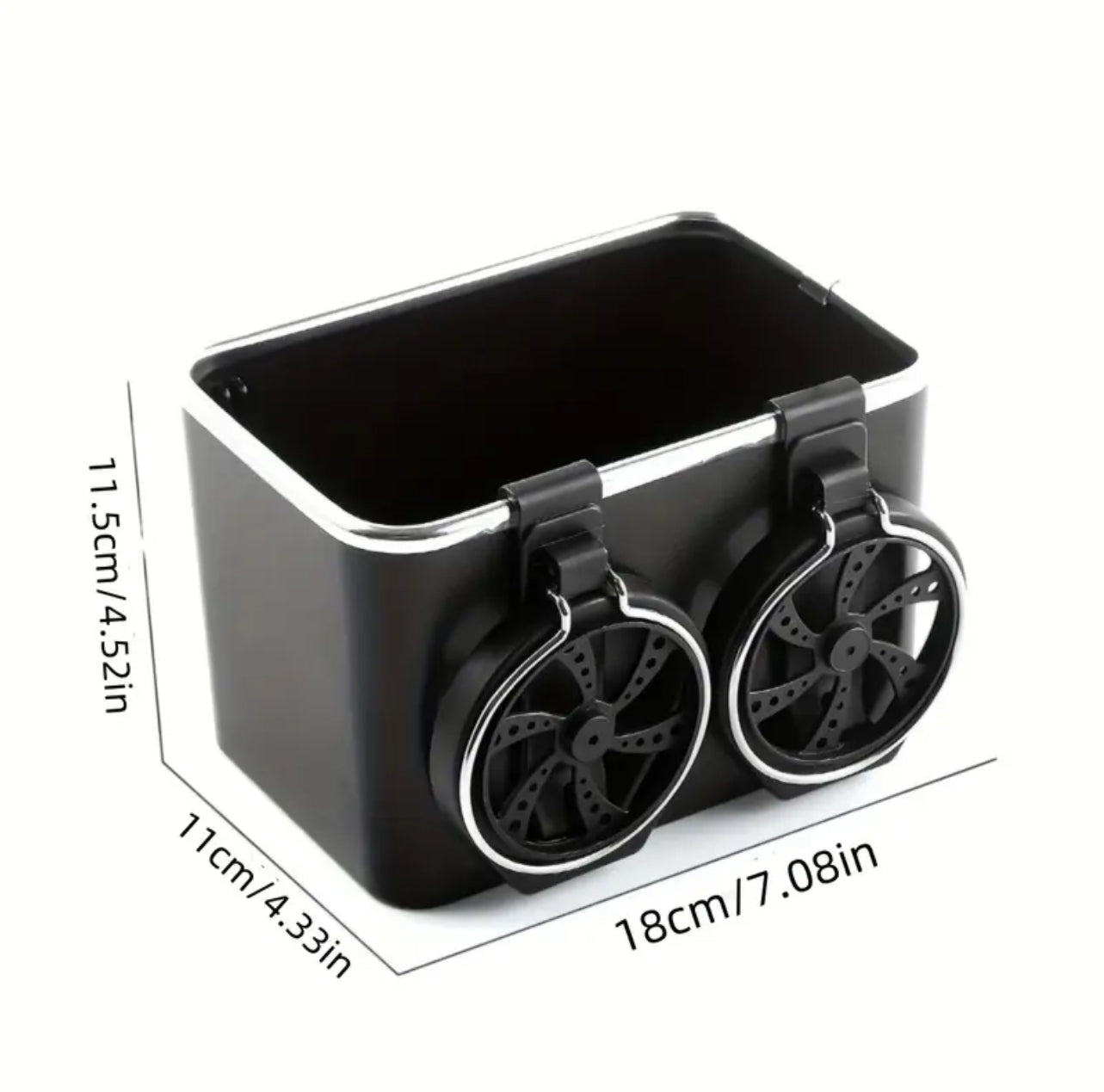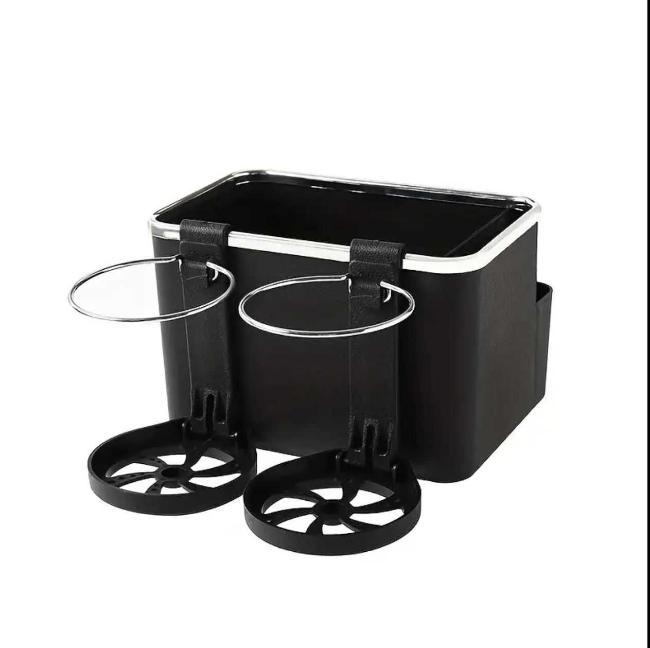 Keep your car clutter-free with this black car armrest organizer. Designed with a storage box, phone slot, and dual bottle holders, it offers convenience and easy access on the go. Perfect for keeping essentials organized while driving in comfort!