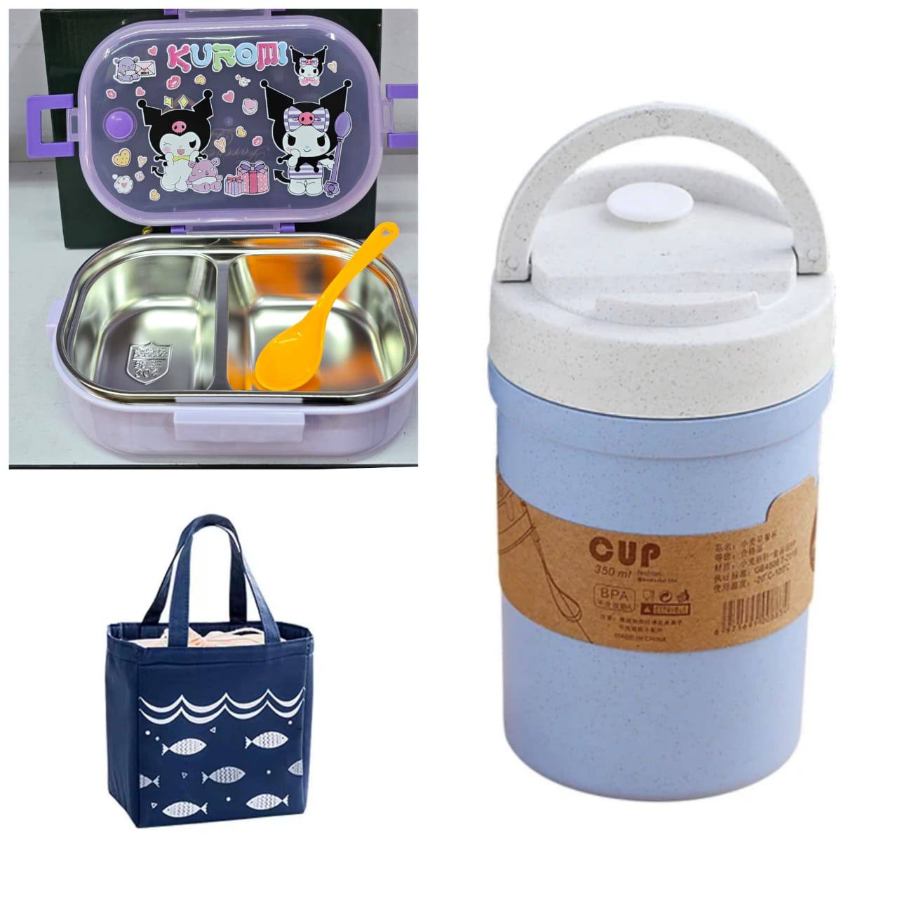 CARTOON 3 IN 1 MICROWAVEBLE LUNCH BOX COMBO SET