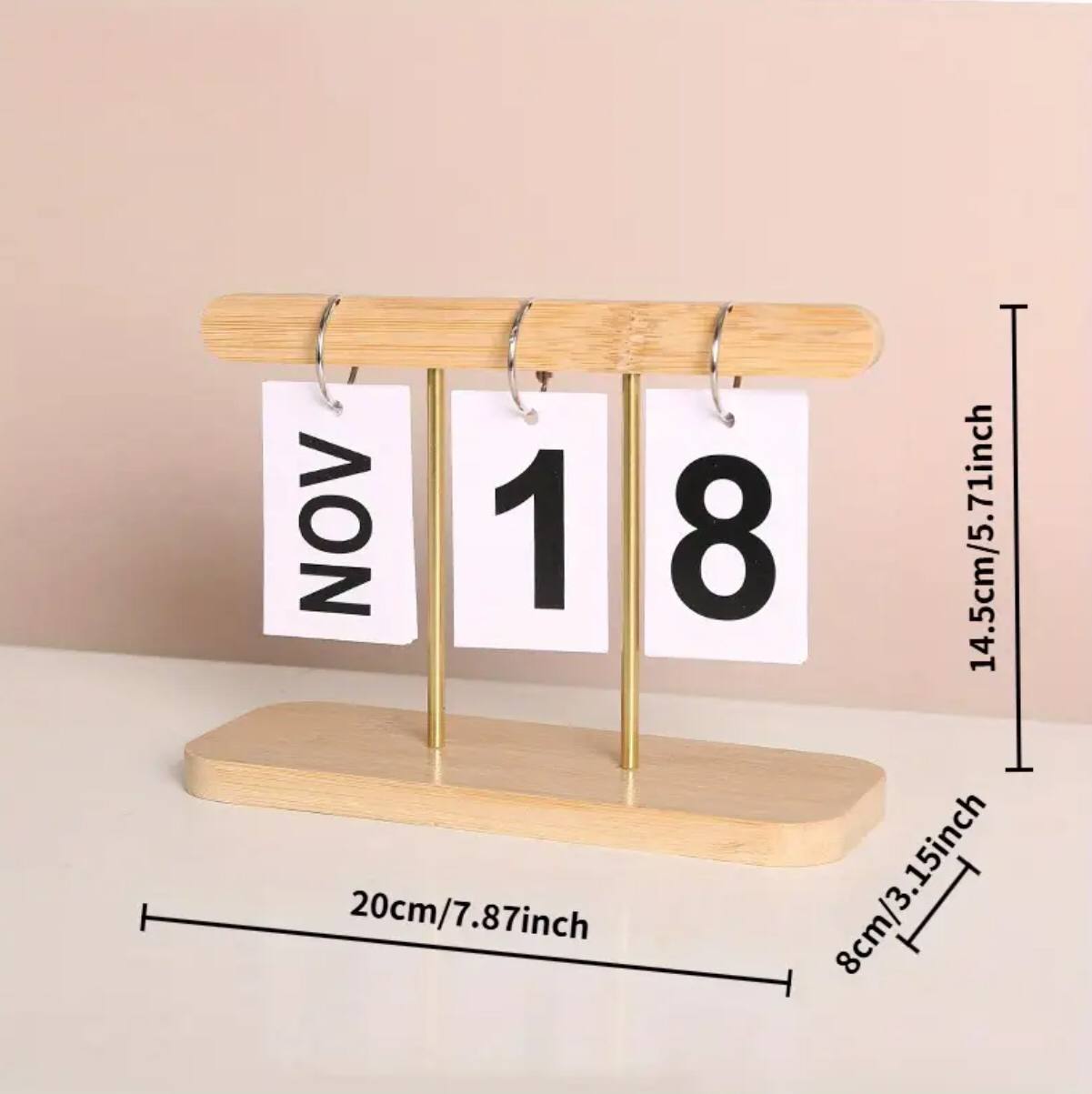 Stay organized with this stylish wooden desk calendar, perfect for home or office decor. Crafted from sturdy natural wood, it features an easy-to-change date display. Available in White and Brown, it adds a touch of elegance while keeping you on schedule.