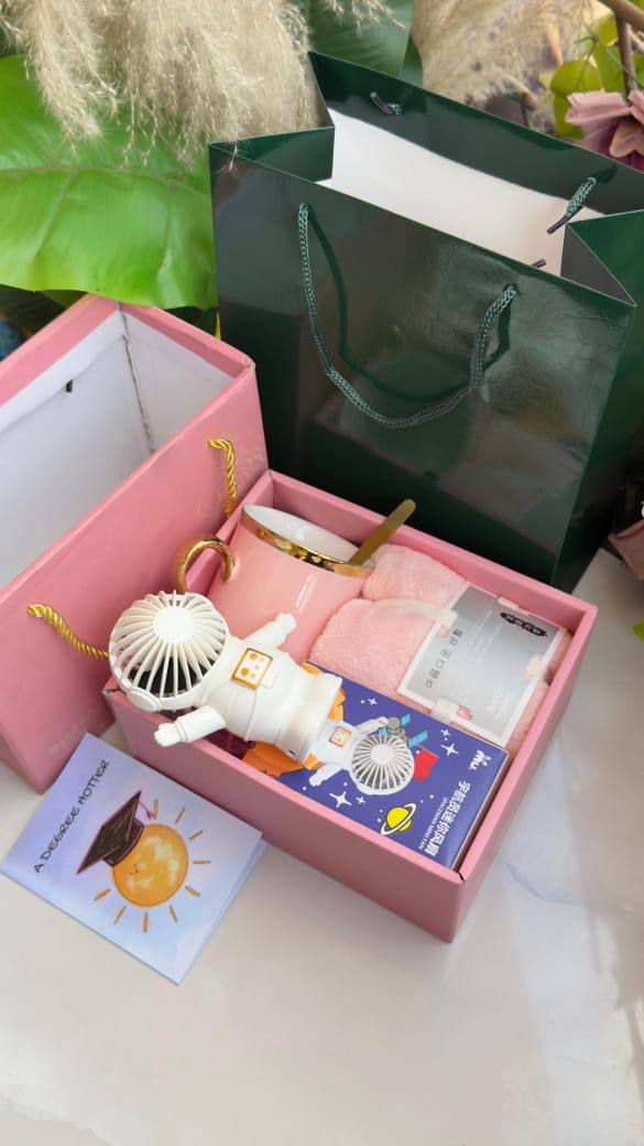 Celebrate their achievement with a thoughtful Graduation Gift Set: portable ceramic mug, soft face towel, heartfelt gift card, and stylish gift bag—practical, memorable, and perfect for honoring new beginnings and future success.