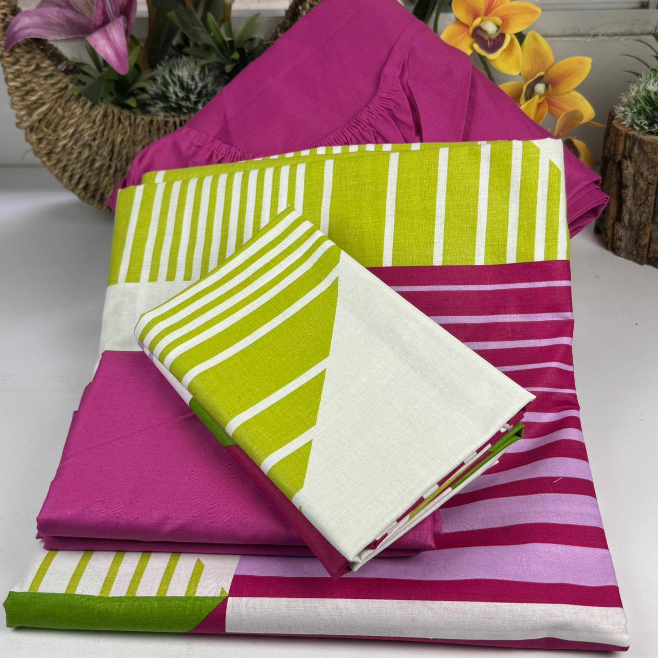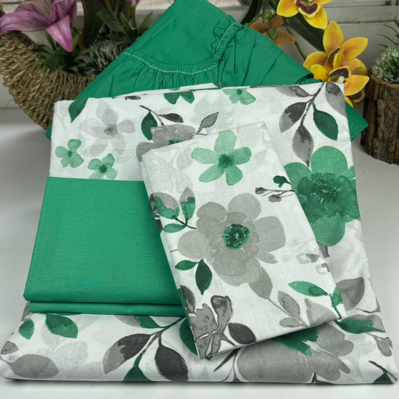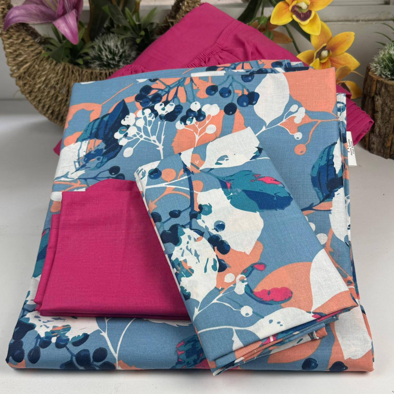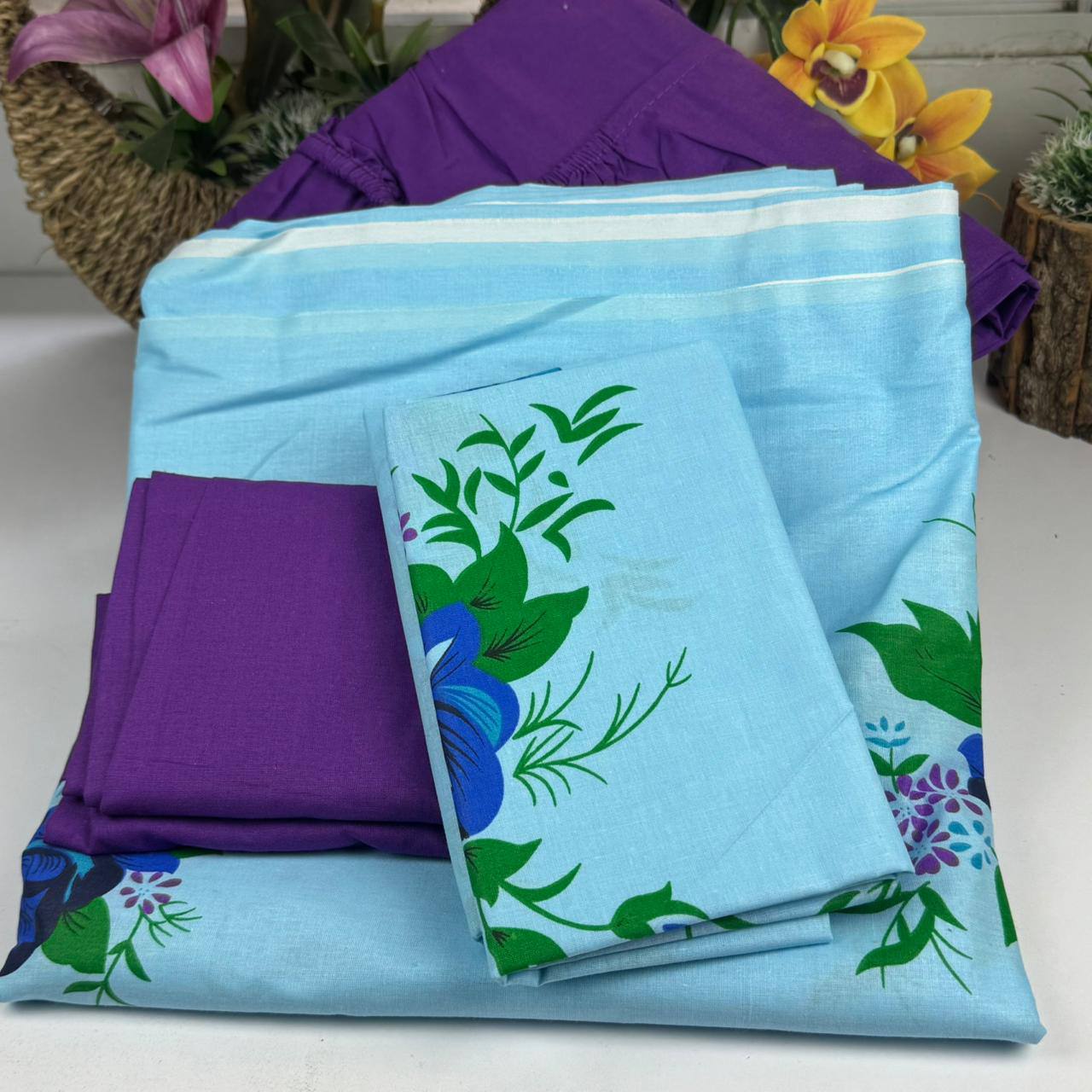 This HIS Mix and Match Fitted set includes 2 bedsheets and 4 pillowcases, perfectly sized 7×8 (6×6 mattress). Featuring one plain fitted sheet and one printed flat sheet, it combines comfort, style, and versatile bedroom décor.