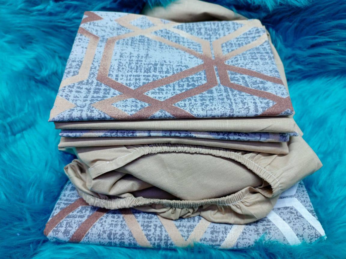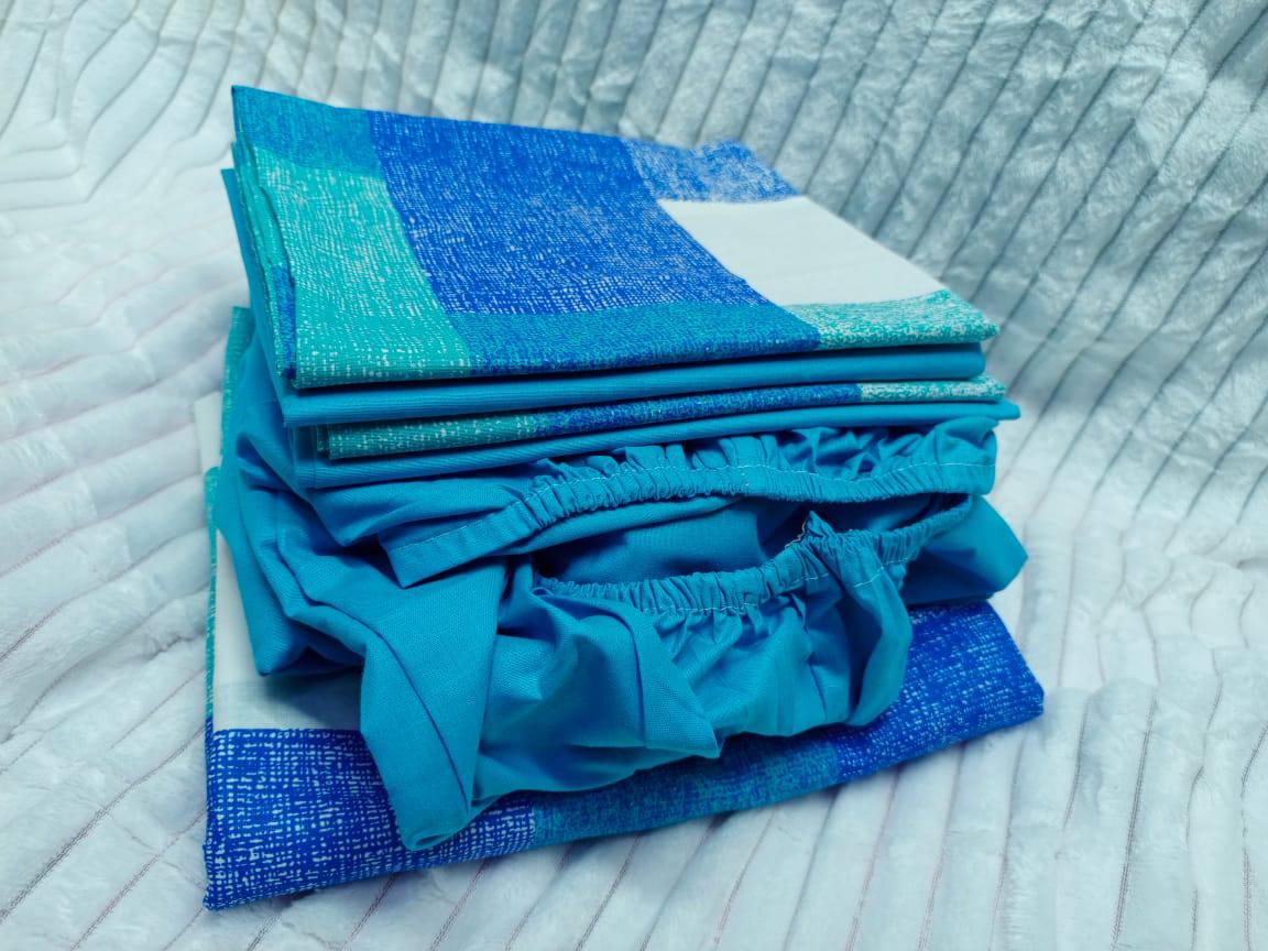 This HIS Mix and Match Fitted set includes 2 bedsheets and 4 pillowcases, sized 7×8 (6×6 mattress). Featuring one plain fitted sheet and one printed flat sheet, it combines style, comfort, and versatile bedroom décor effortlessly.