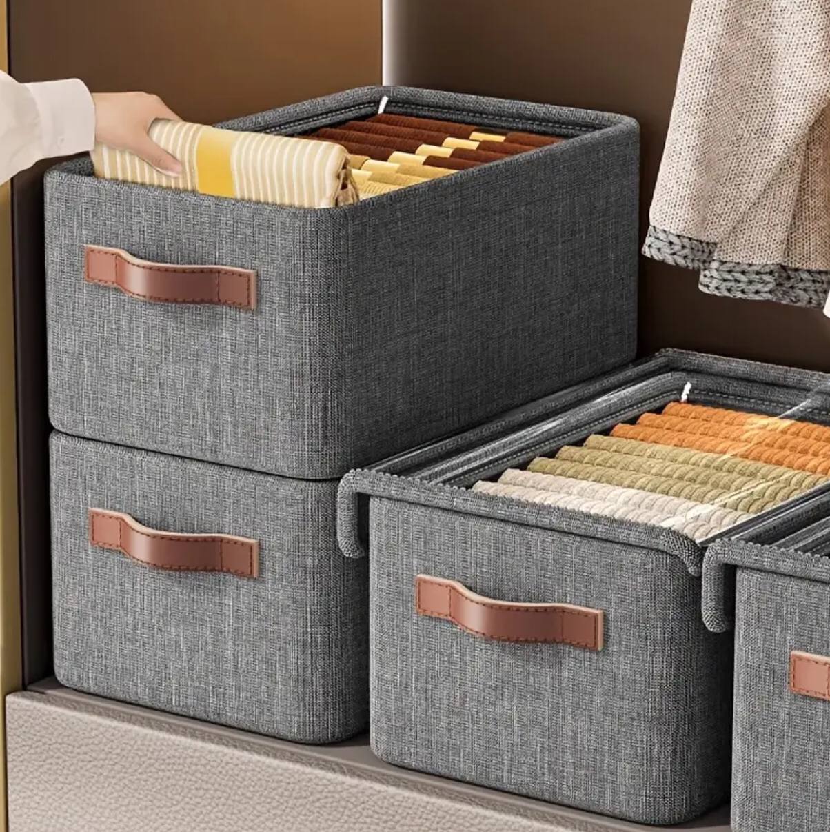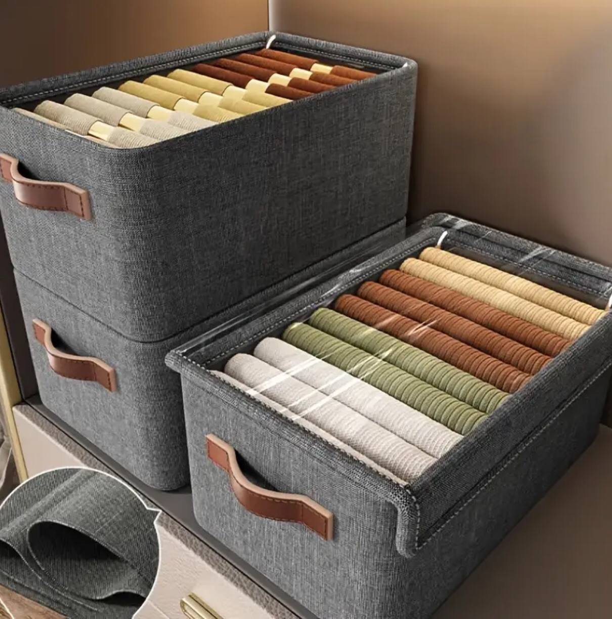 Declutter your closet with this Grey Metal Frame Wardrobe Organizer. Measuring 50×20×30 cm, it features sturdy handles, a transparent dustproof lid, and a foldable design. Ideal for jeans, shirts, and more—stylish, durable, and easy to store!