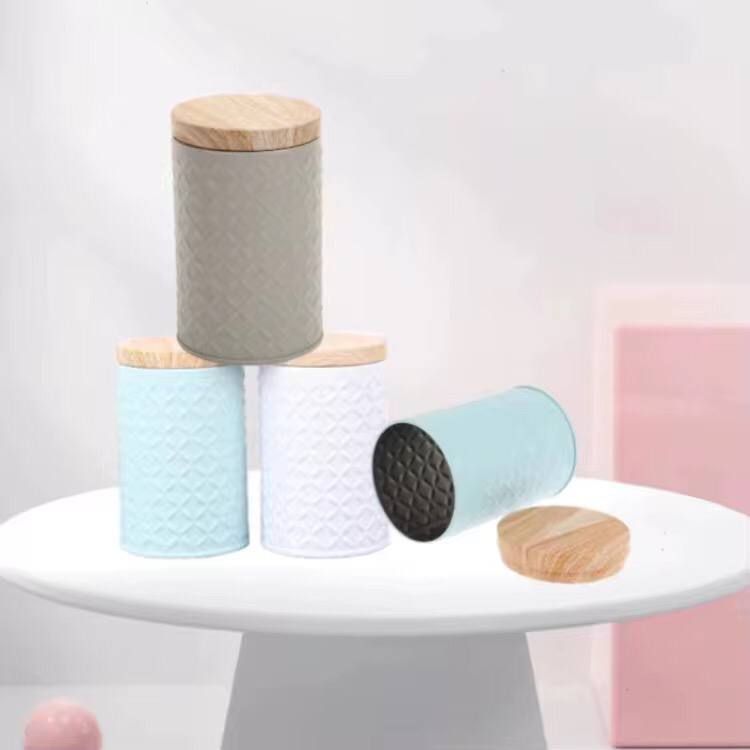 Round Wood Grain Tin Box Metal Storage Home Organizer Coffee Tea Cans DIY Candle Making Jar