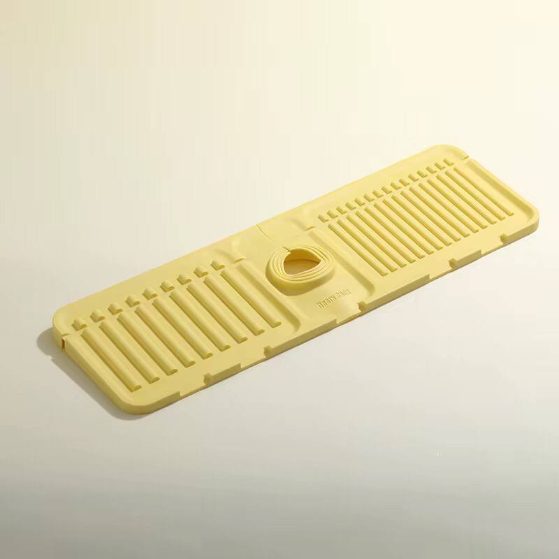 Prevent messes with this silicone faucet mat and sink splash guard: durable drainage pad, protects counters from water spills, available in cream, grey, and green, easy to clean, and keeps your kitchen neat and stylish.