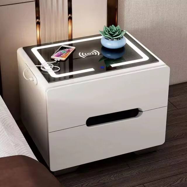 Upgrade your bedroom with this smart bedside table featuring built-in LED lights and a smartphone holder. Sleek, modern, and functional—perfect for charging devices, ambient lighting, and nighttime convenience. A stylish solution for tech-savvy, clutter-free living.