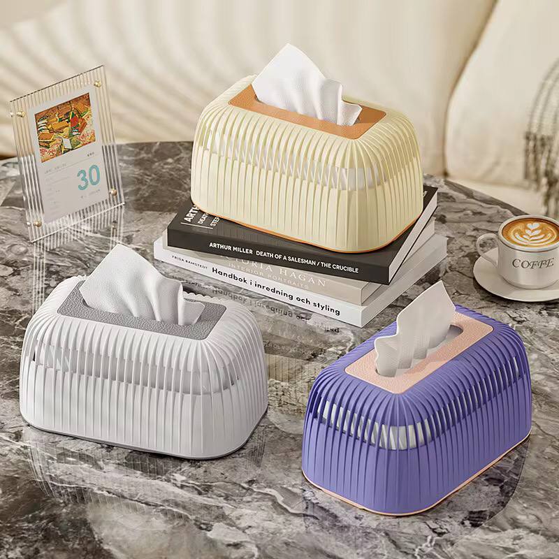Add a touch of style with this striped tissue box. Made from durable plastic, it features a non-slip bottom, easy-to-clean surface, and a sleek 21x13.5x10.5cm design—perfect for any room or office.